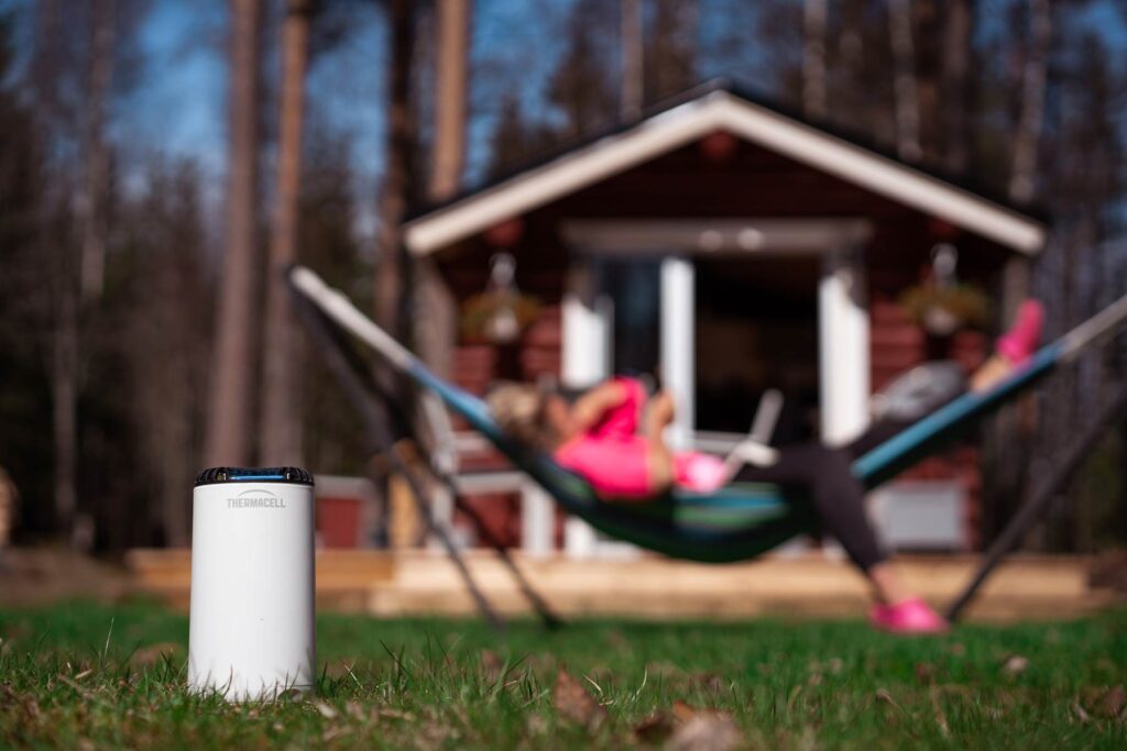 Thermacell Mini Halo -pöytämalli soveltuu muotoilunsa puolesta vaativampaankin makuun. Se on tyylikäs millä tahansa terassilla – ja soveltuu hyvin mökkituliaiseksikin. Juomatölkin kokoinen laite on huomaamaton, mutta tekee illanistujaisista huomattavasti mukavammat kaikille.